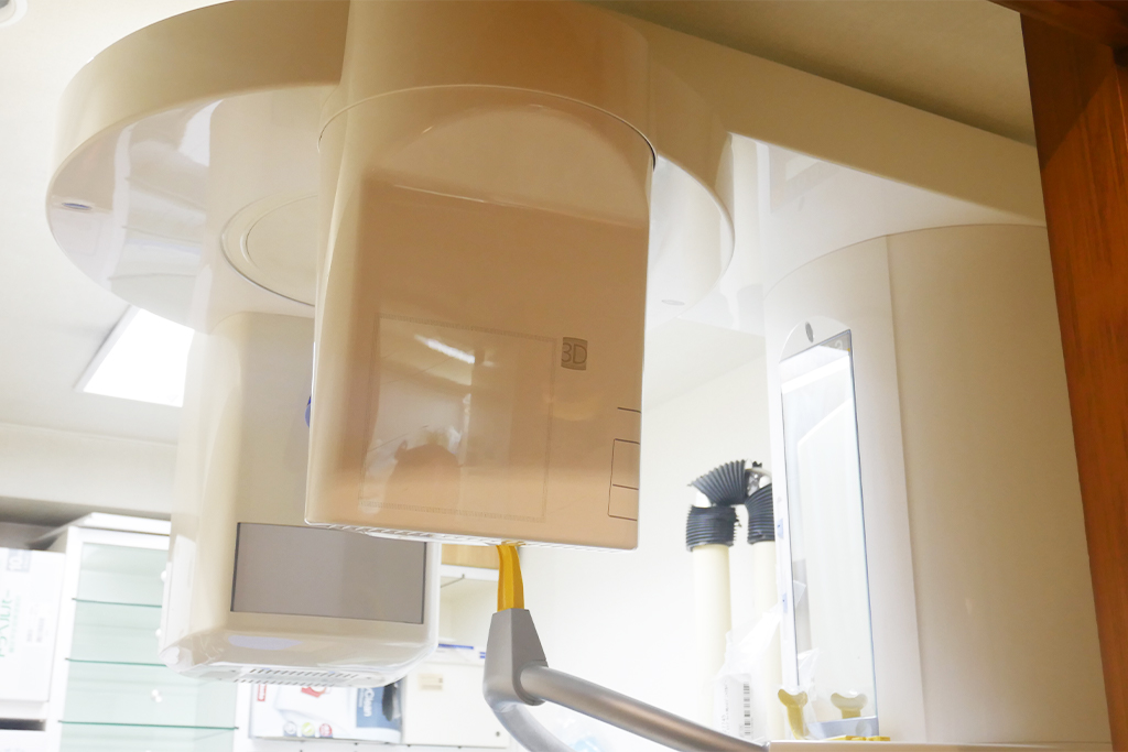 歯科用CTで、複雑な形をしている歯の根っこの長さや形状、曲がり具合、神経や血管の位置などを確認した上で、治療を行っています。精密な治療に役立ち、成功率を向上させるほかに、周辺の組織や神経への損傷のリスクを軽減します。